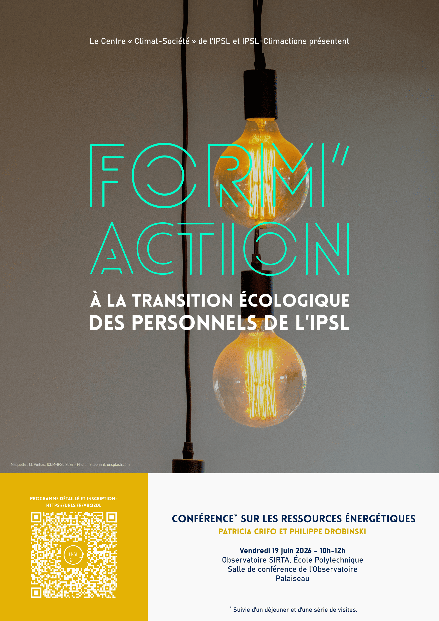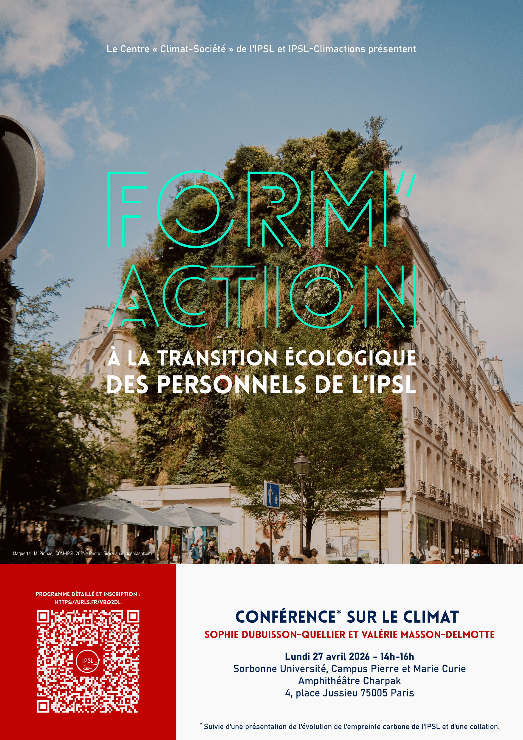 • 16h–16h30, amphithéâtre Charpak – Présentation de l’évolution de l’empreinte carbone de l’IPSL, par IPSL-Climactions